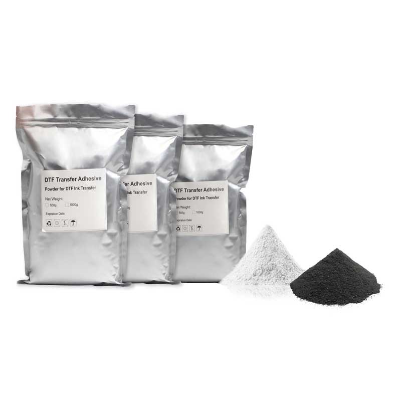 پودر سفید dtf برای پاپ بر روی سطوح با زمینه سفید و پودر مشکی dtf بر روی سطوح مشکی و تیره بهتر هستند.